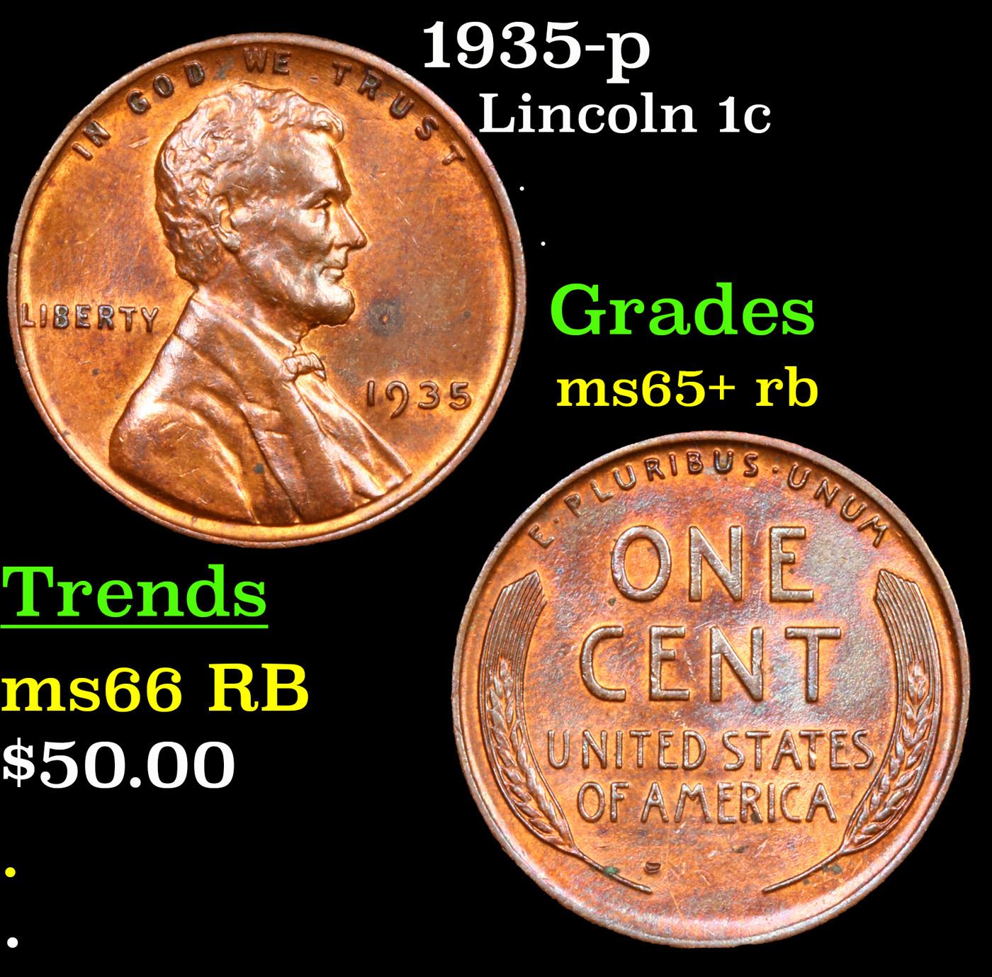 1935-p Lincoln Cent 1c Grades Gem+ Unc RB.