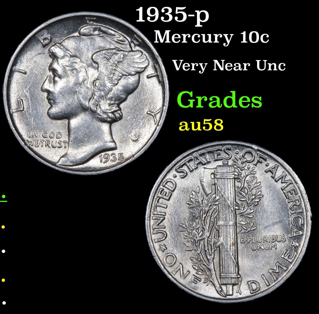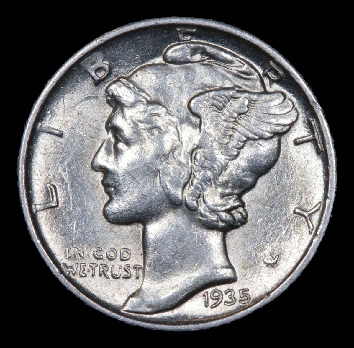 1935-p . Very Near Unc Mercury Dime 10c Grades Choice AU/BU Slider.