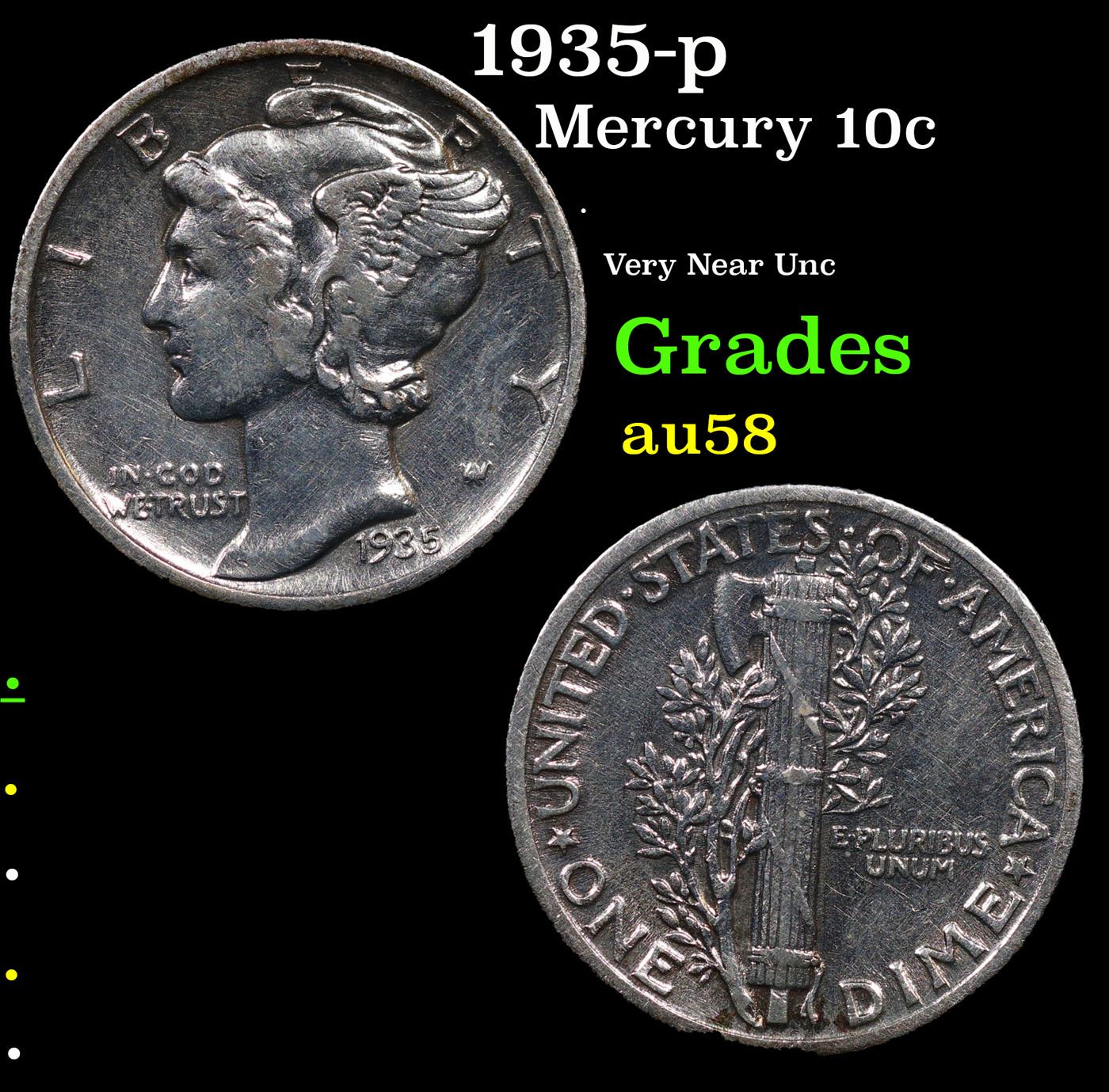 1935-p Mercury Dime 10c Grades Choice AU/BU Slider.