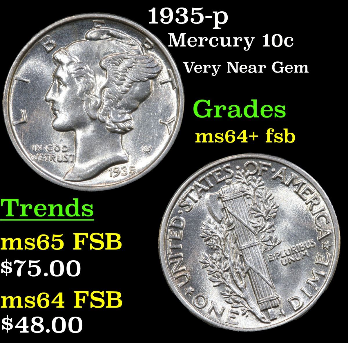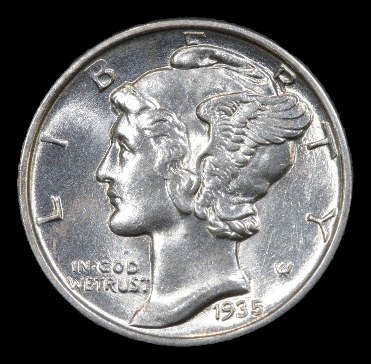 1935-p . Very Near Gem Mercury Dime 10c Grades Choice Unc+ FSB.