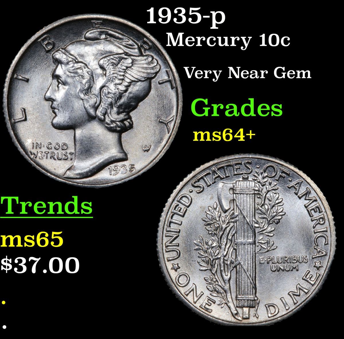1935-p Mercury Dime 10c Grades Choice+ Unc.