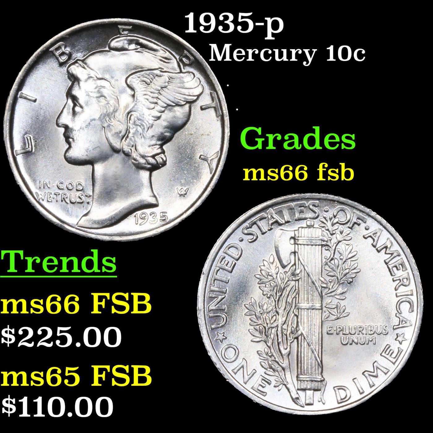 1935-p Mercury Dime 10c Grades GEM+ FSB.