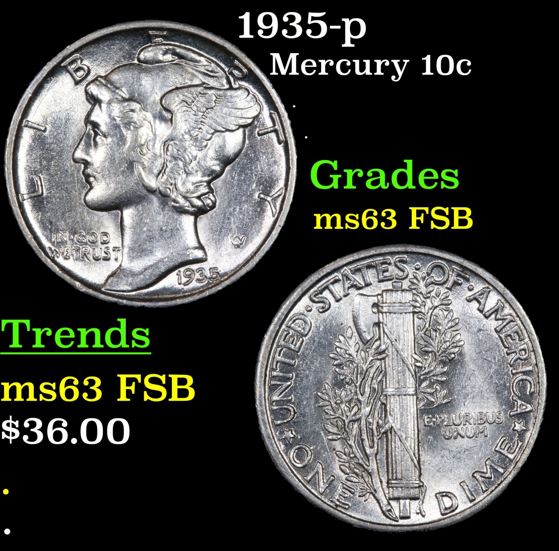 1935-p . . Mercury Dime 10c Grades Select Unc FSB.