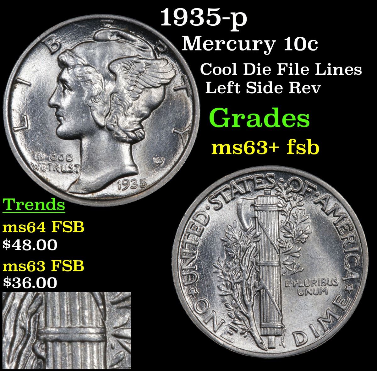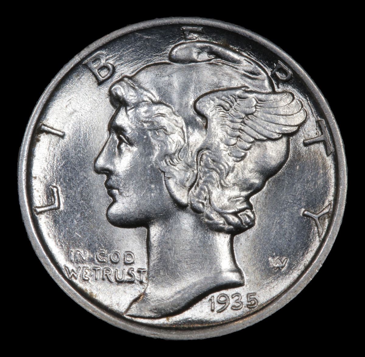 1935-p Mercury Dime 10c Grades Select Unc+ FSB.