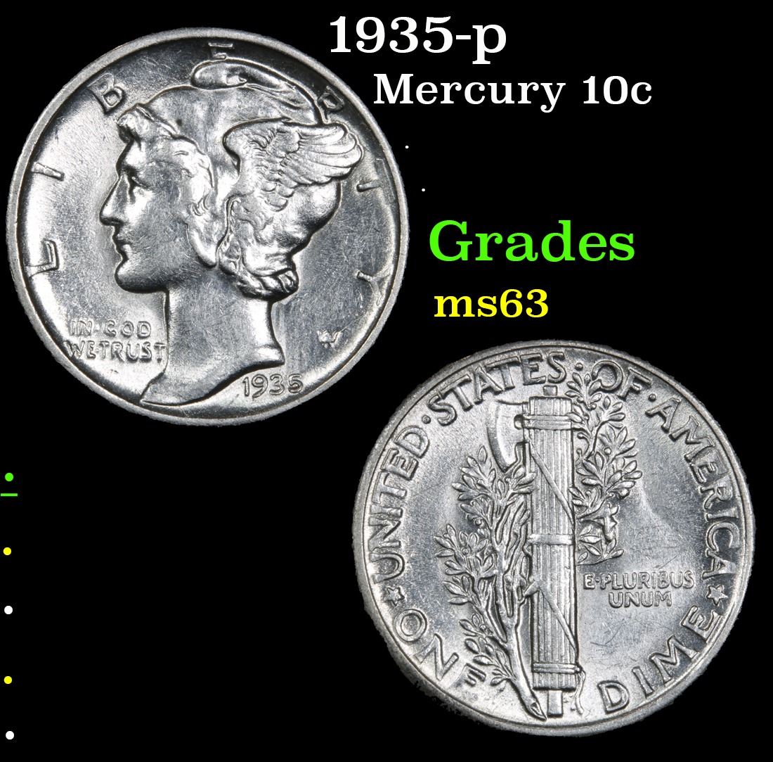 1935-p Mercury Dime 10c Grades Select Unc.