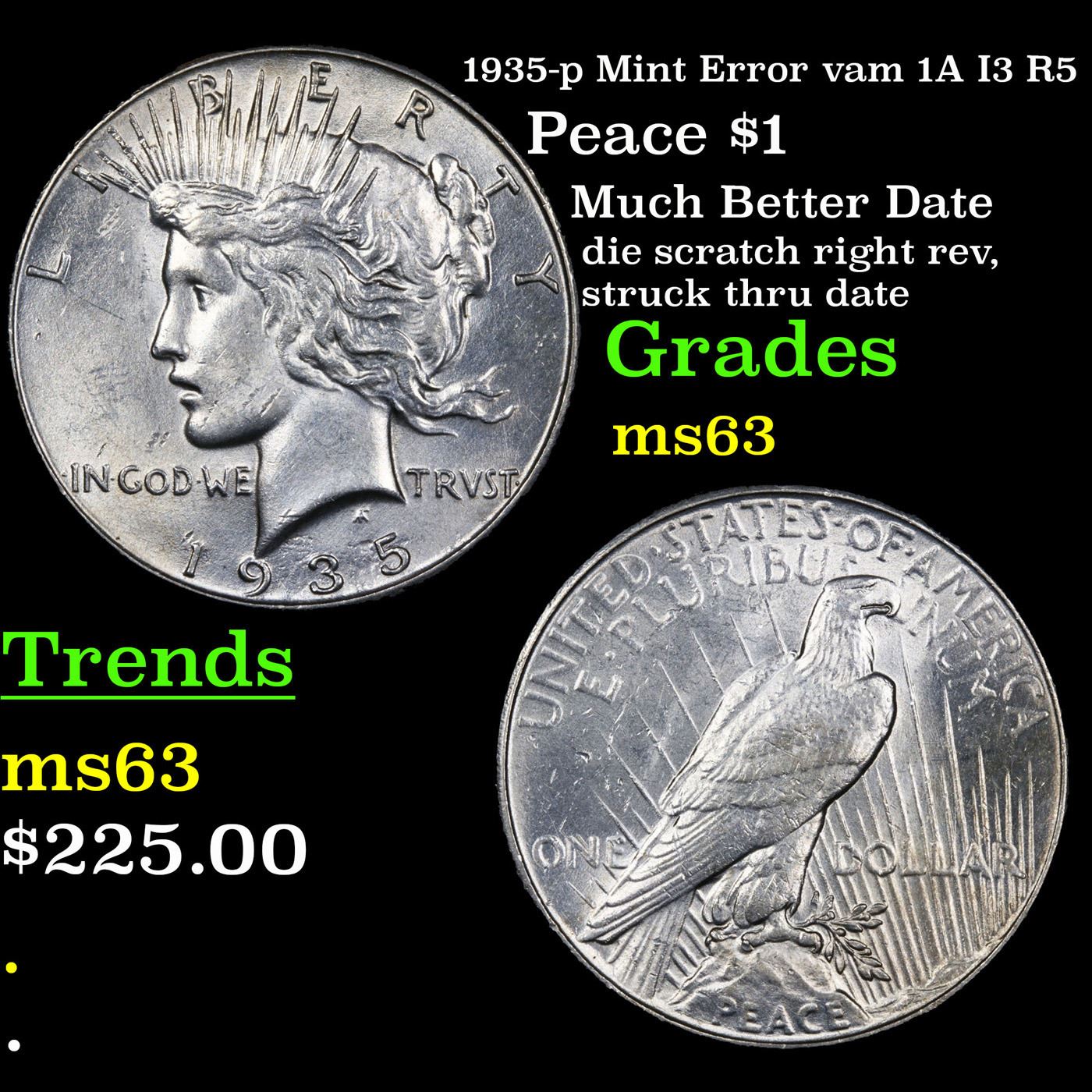 1935-p Mint Error vam 1A I3 R5 Peace Dollar $1 Grades Select Unc.