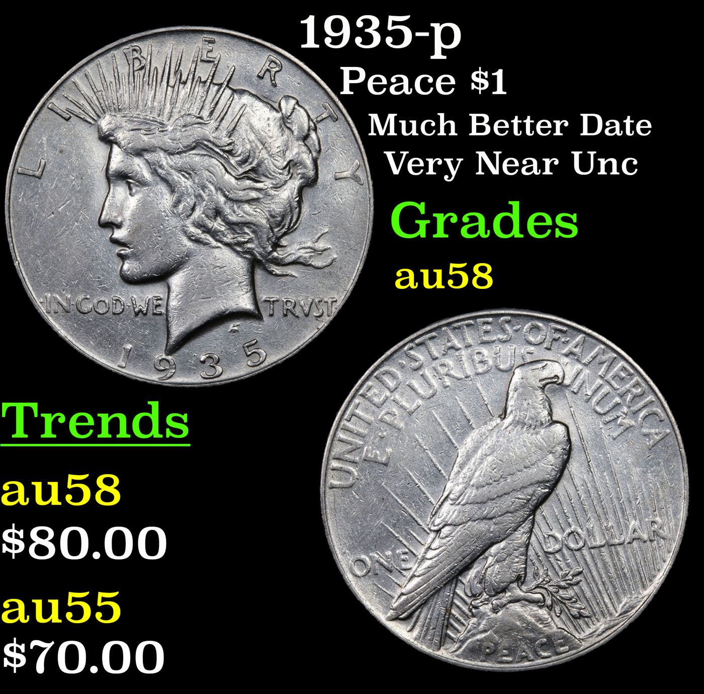 1935-p Peace Dollar $1 Grades Choice AU/BU Slider.