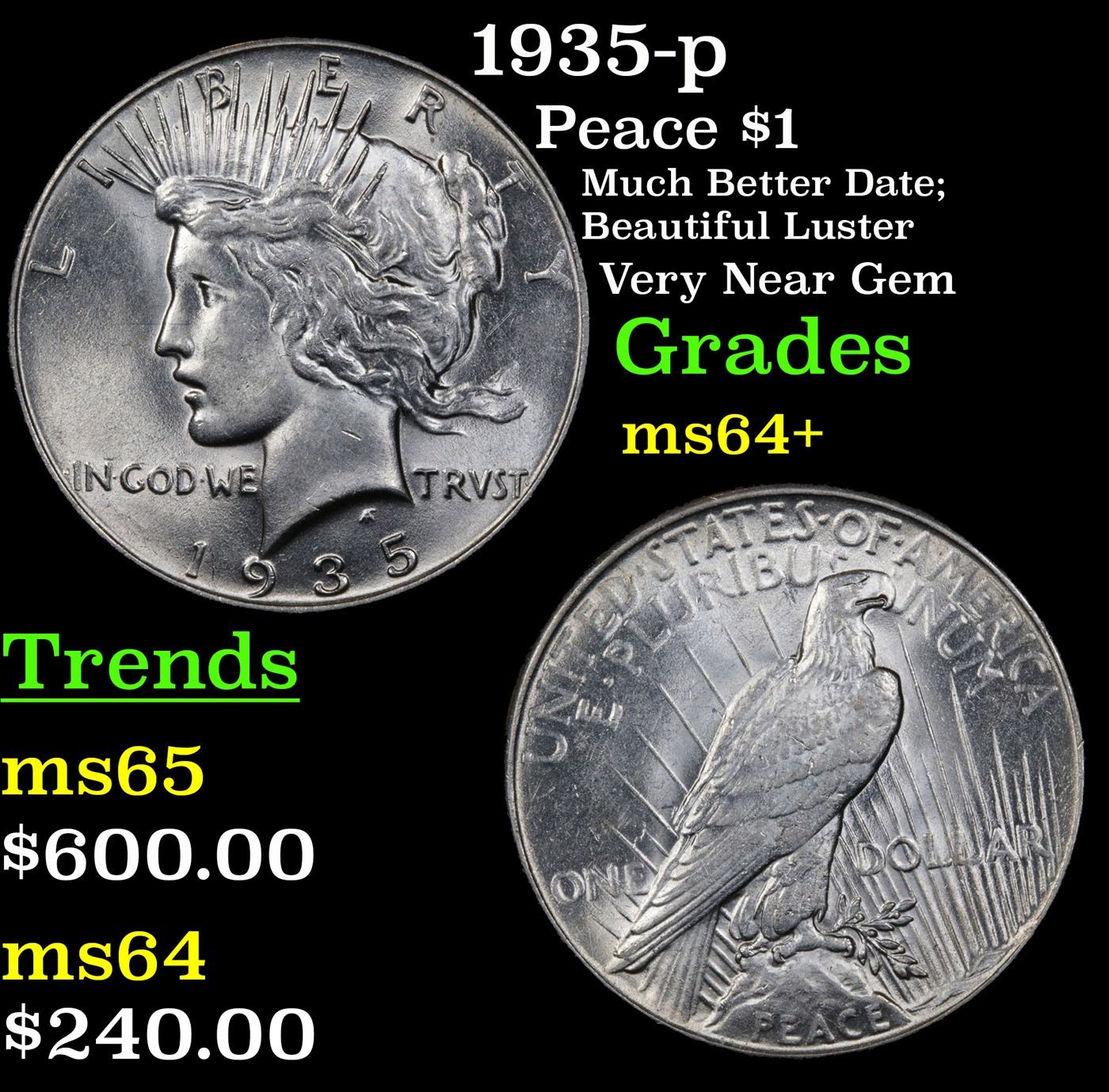 1935-p Peace Dollar $1 Grades Choice+ Unc.