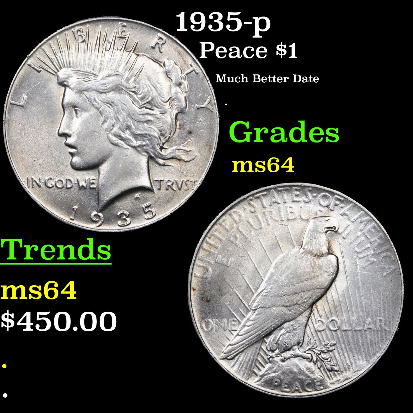 1935-p Peace Dollar $1 Grades Choice Unc.