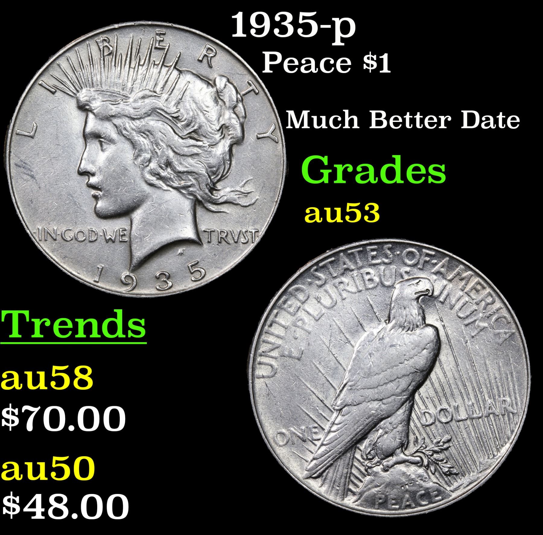 1935-p Much Better Date . Peace Dollar $1 Grades Select AU.