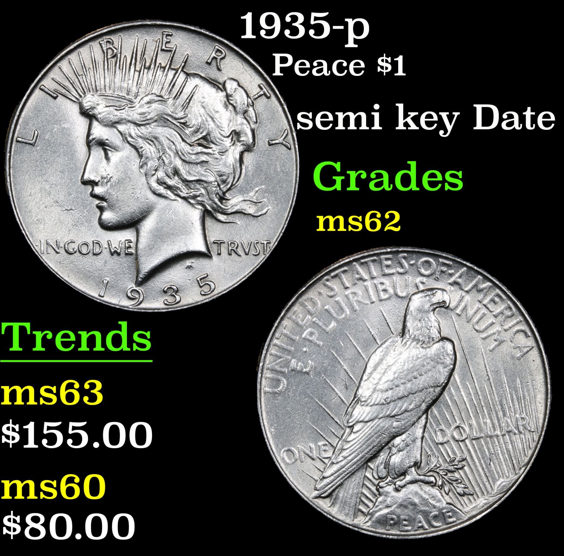 1935-p Peace Dollar $1 Grades Select Unc. semi key Date