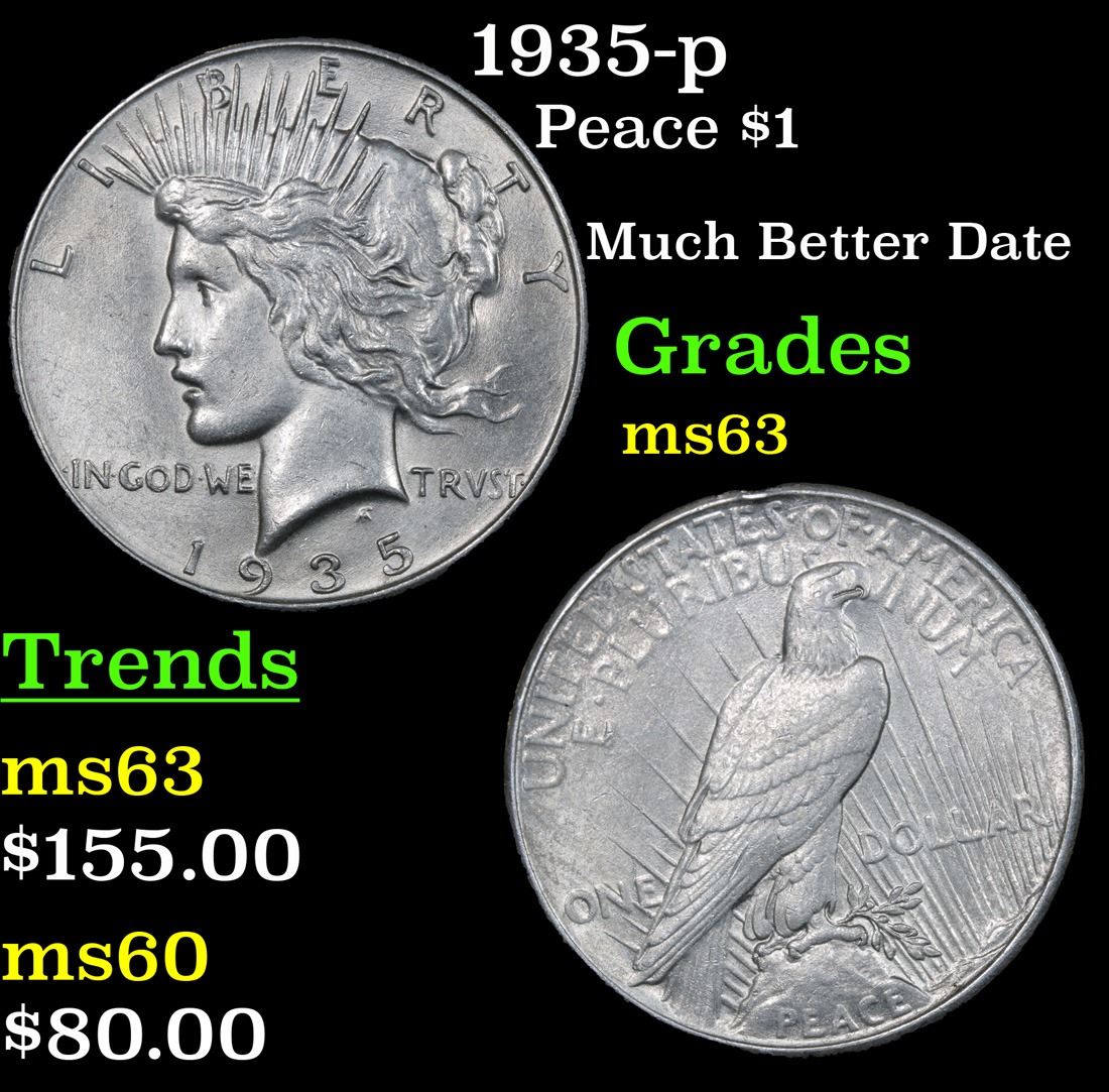 1935-p Much Better Date . Peace Dollar $1 Grades Select Unc.