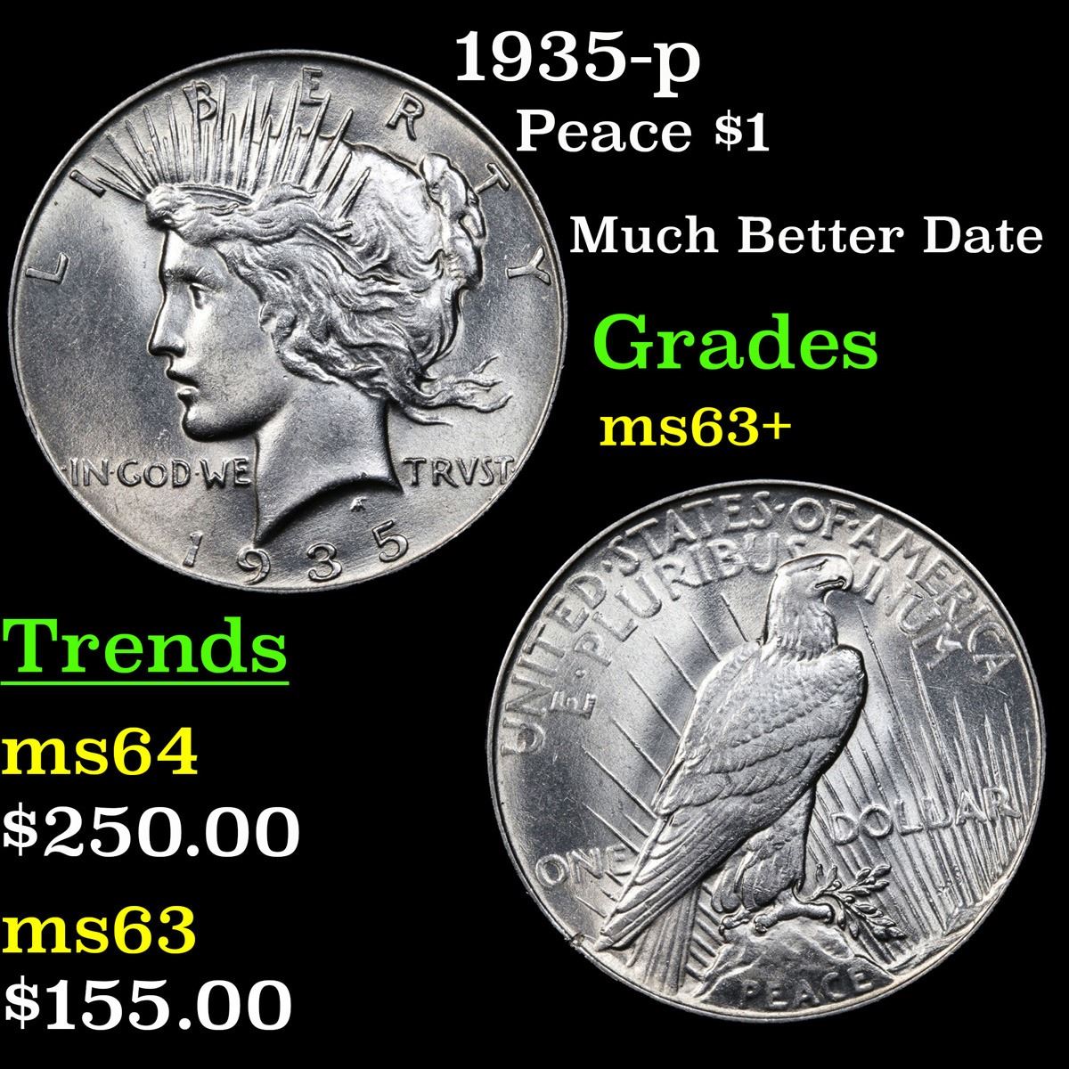 1935-p Much Better Date . Peace Dollar $1 Grades Select+ Unc.
