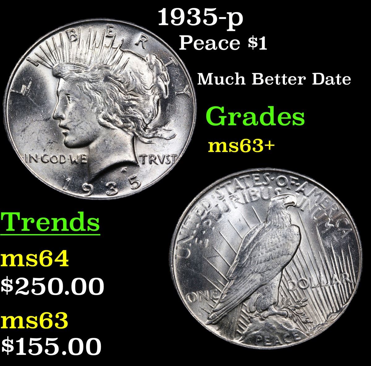 1935-p Peace Dollar $1 Grades Select+ Unc.