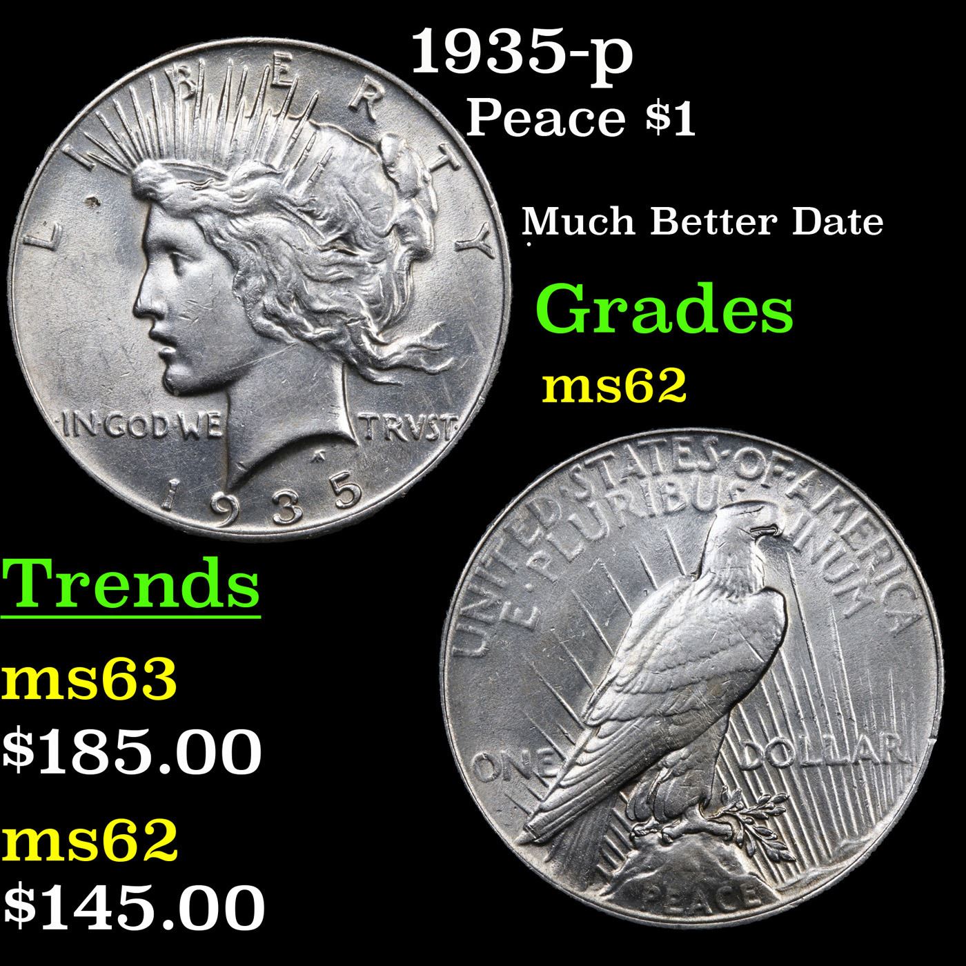 1935-p Peace Dollar $1 Grades Select Unc.
