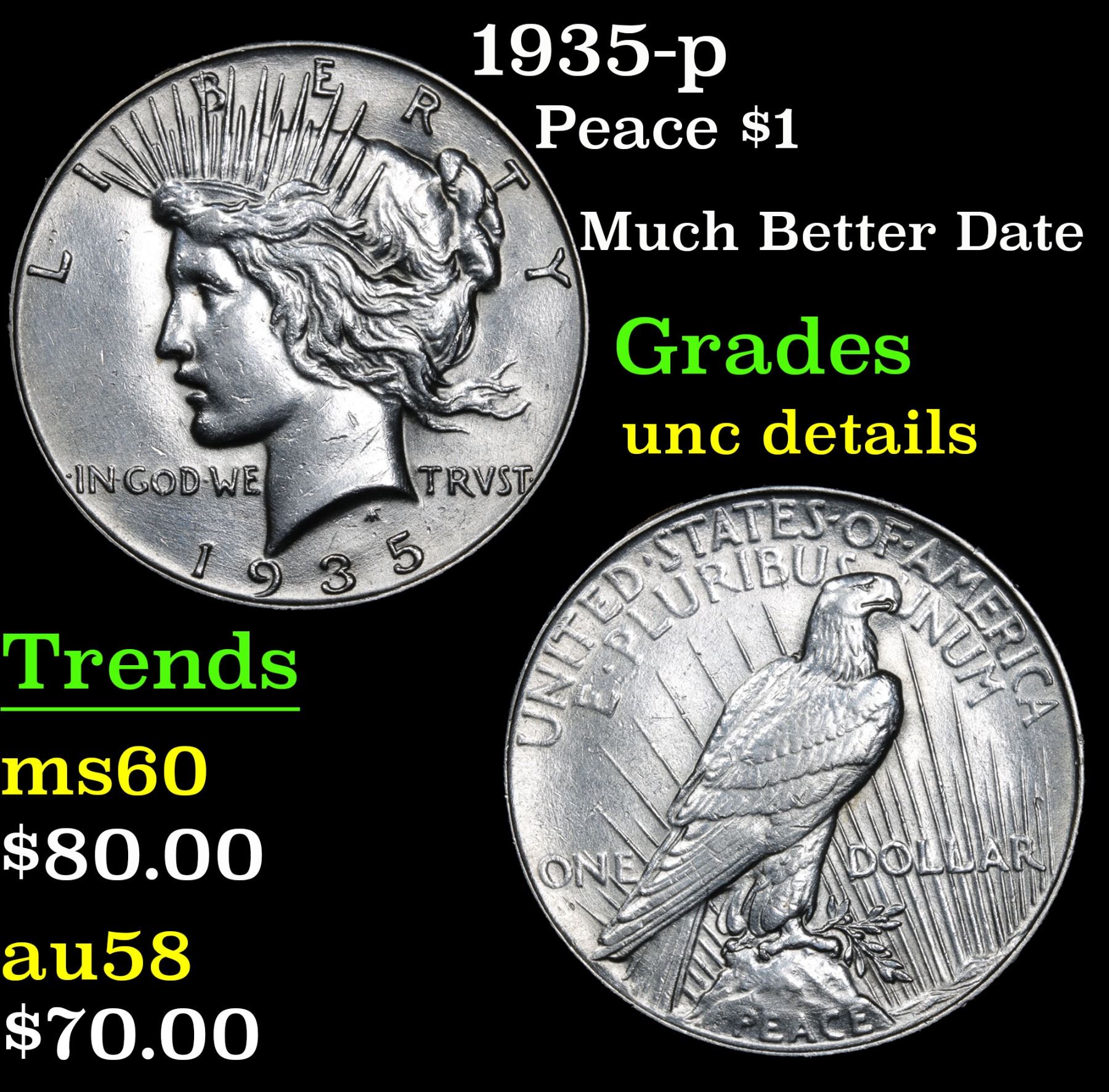 1935-p Peace Dollar $1 Grades Unc Details. Much Better Date