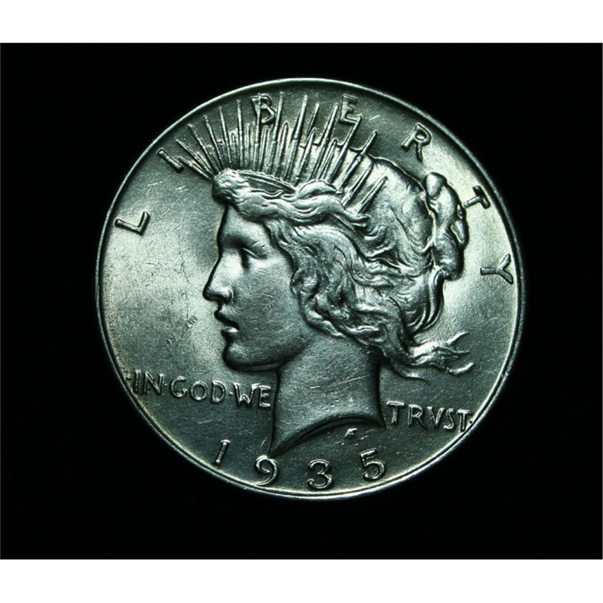 Blast White Example, Well struck final year of issue of the Peace Dollar series and the end of a 90% circulating Silver Dollar in American history. Coin World's Coin Values lists ms64 at $275 and The Wholesale Greysheet lists ms64 at $175. Estimated Value $200