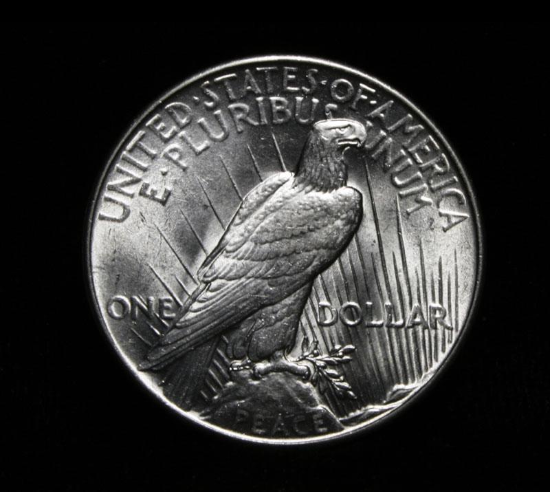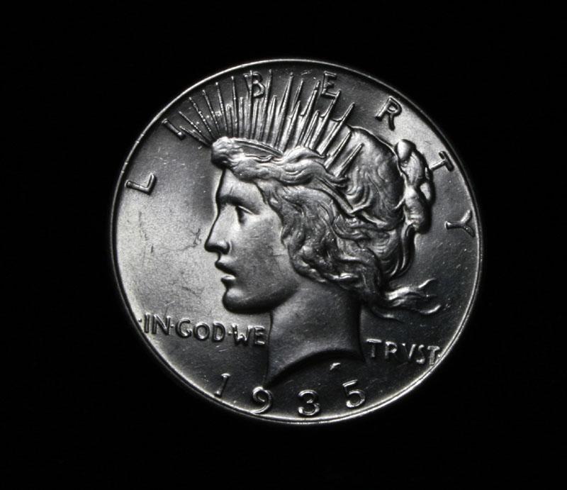 A great and pleasing example of the 1935-p. Very superior luster. Great Eye appeal. Final Year of issue of the Peace Dollar Series and the last time a 90% silver Dollar was released for general circulation in American history. Wholesale Greysheet Value is $170 in ms64 and $635 in ms65. Estimated Value $300