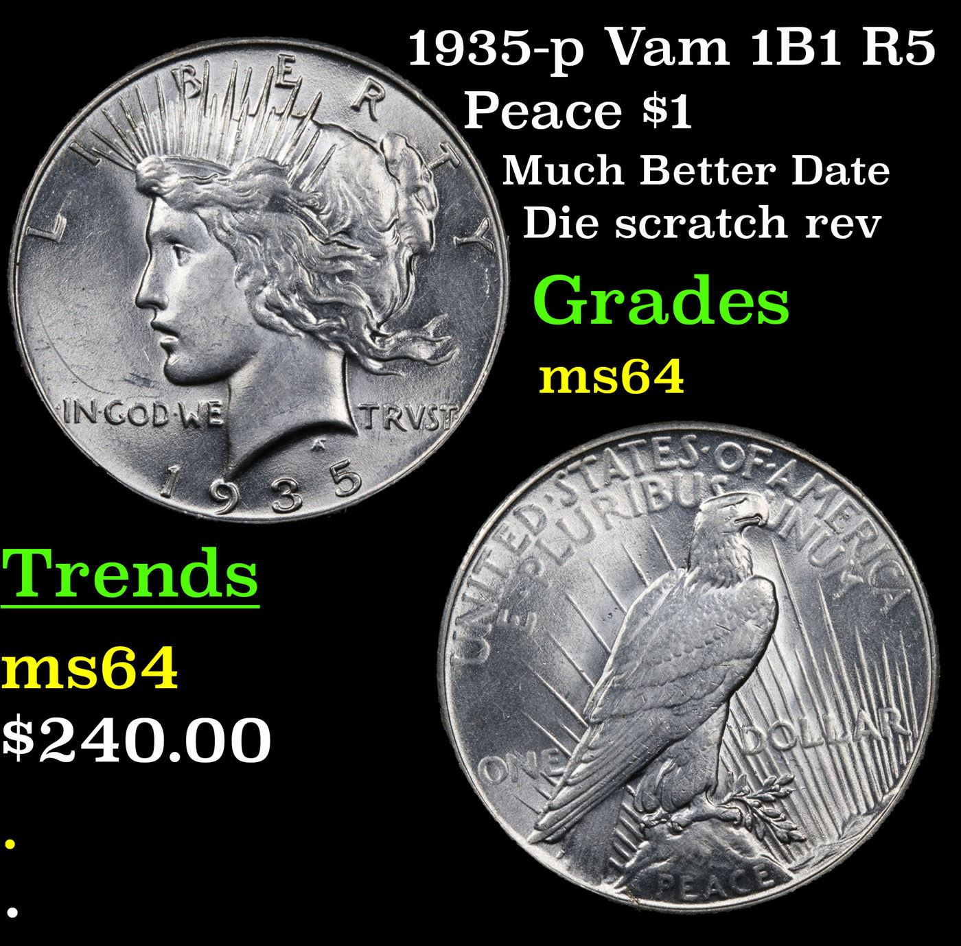 1935-p Vam 1B1 R5 Peace Dollar $1 Grades Choice Unc.
