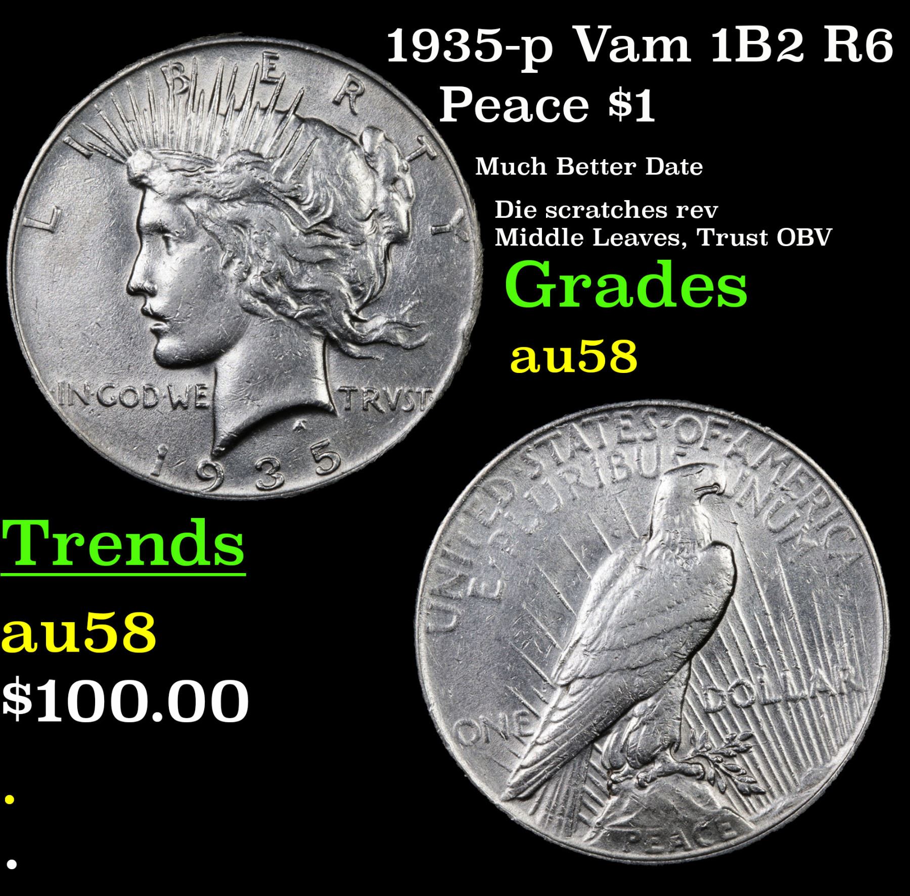 1935-p Vam 1B2 R6 Peace Dollar $1 Grades Choice AU/BU Slider.