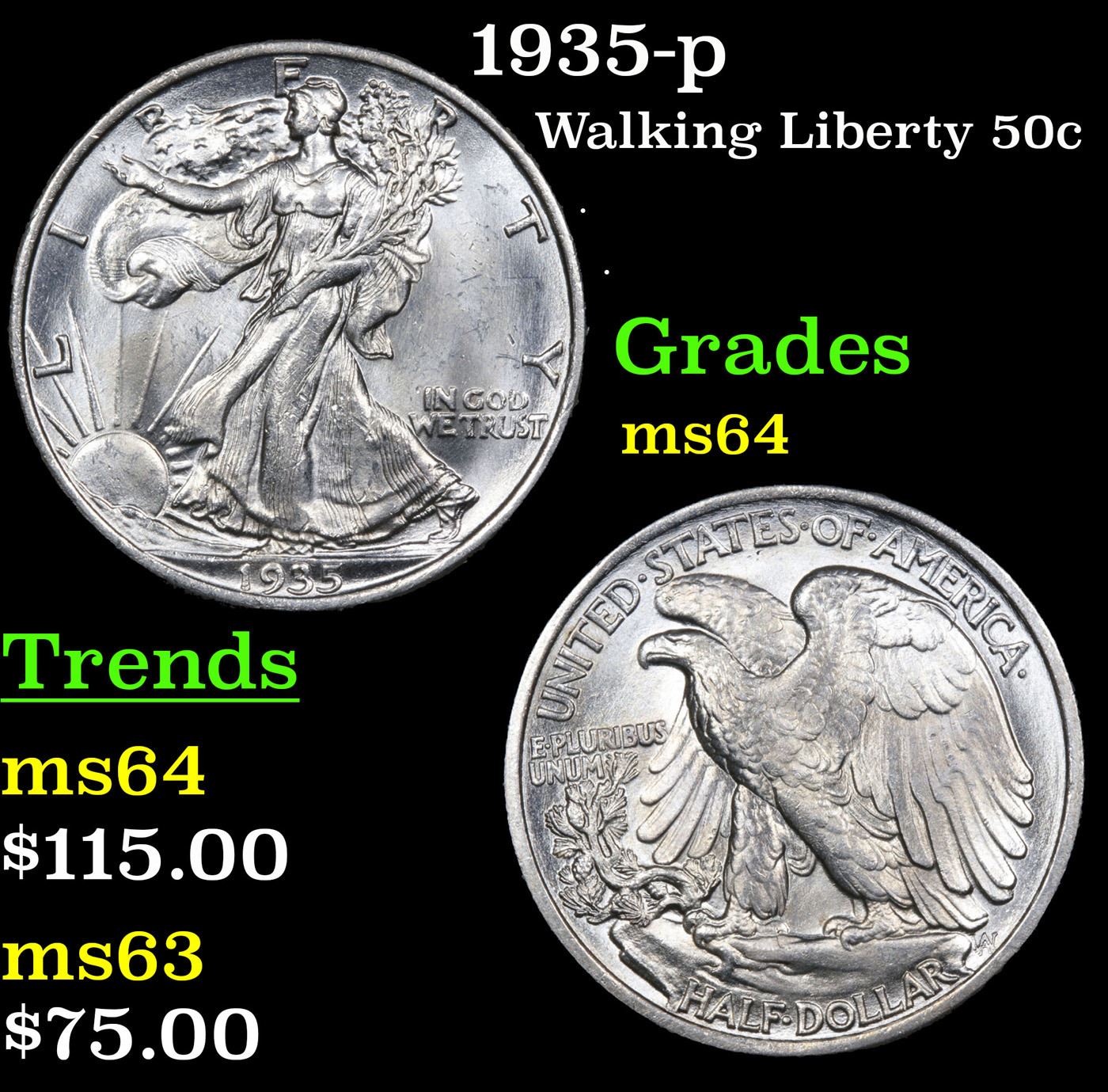 1935-p Walking Liberty Half Dollar 50c Grades Choice Unc.