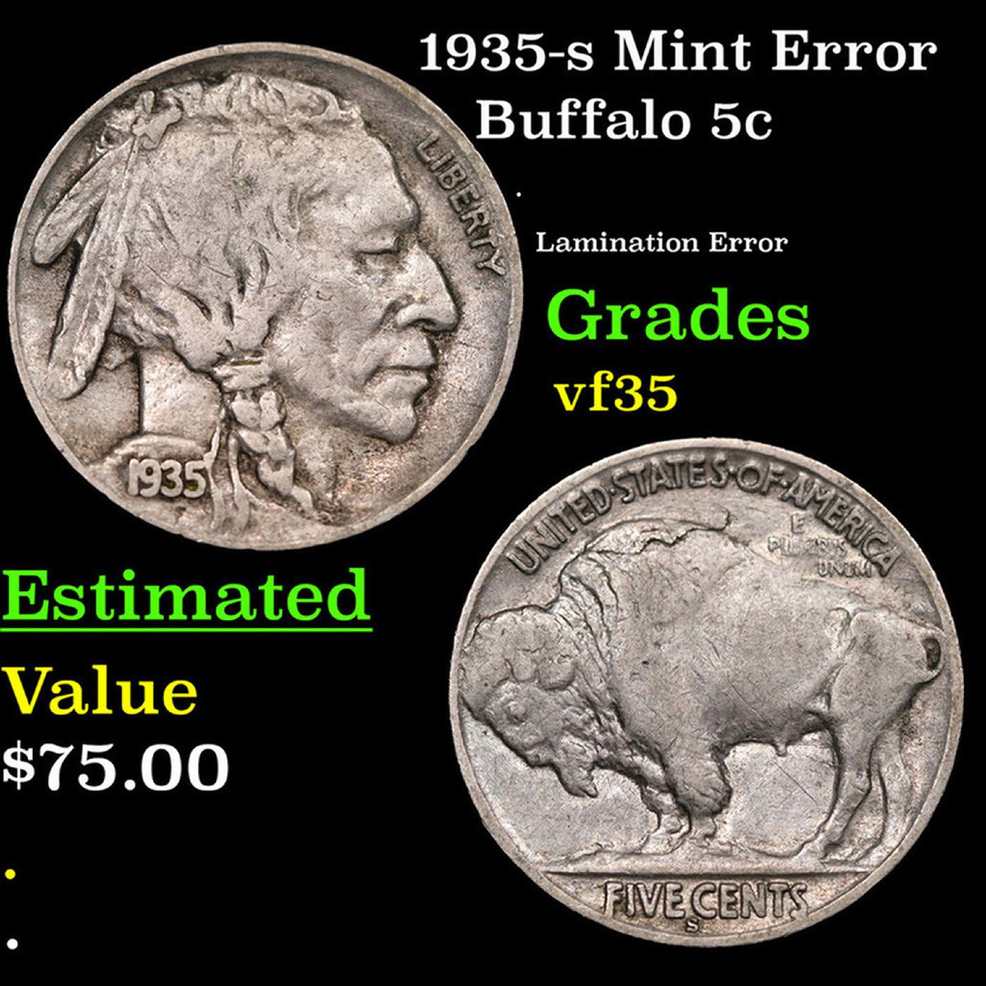 1935-s Mint Error Buffalo Nickel 5c Grades vf++.