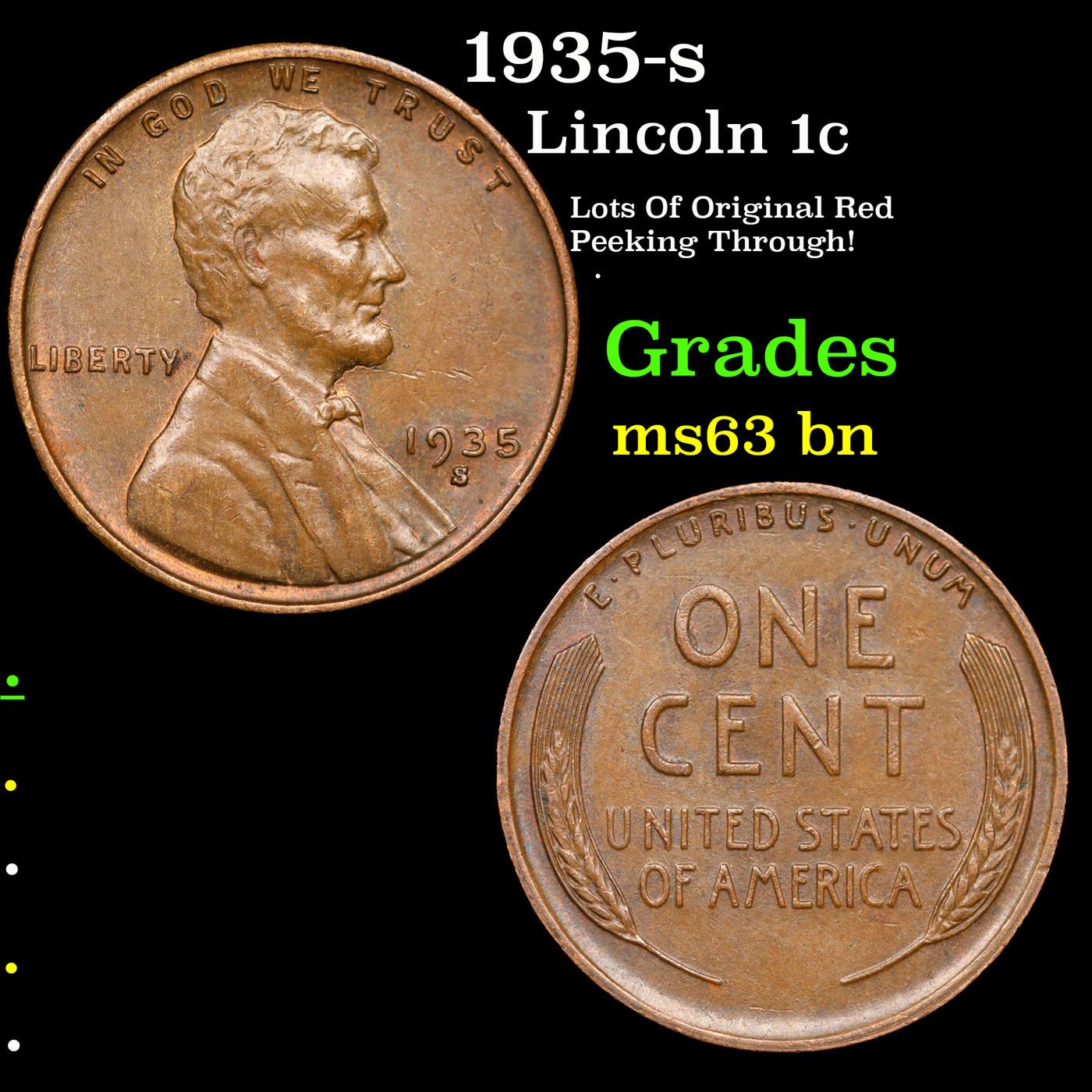 1935-s Lincoln Cent 1c Grades Select Unc BN.