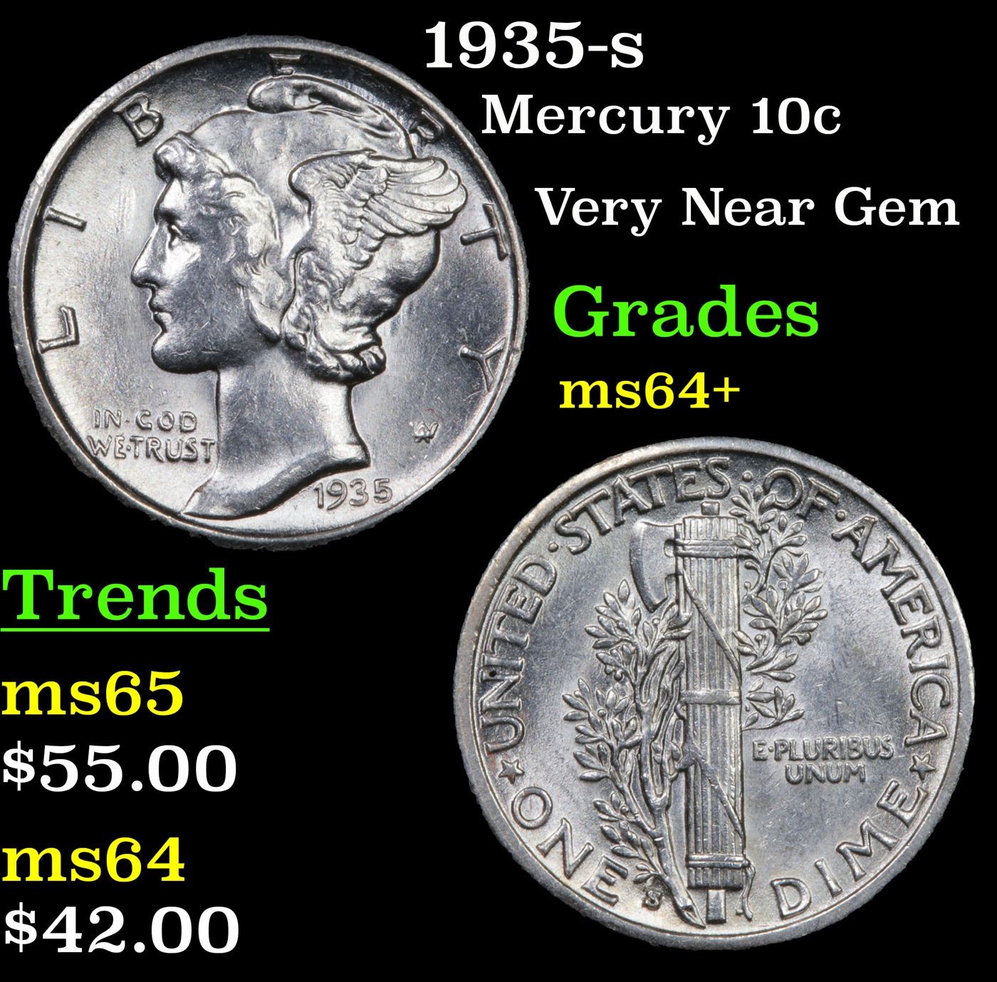 1935-s Mercury Dime 10c Grades Choice+ Unc.