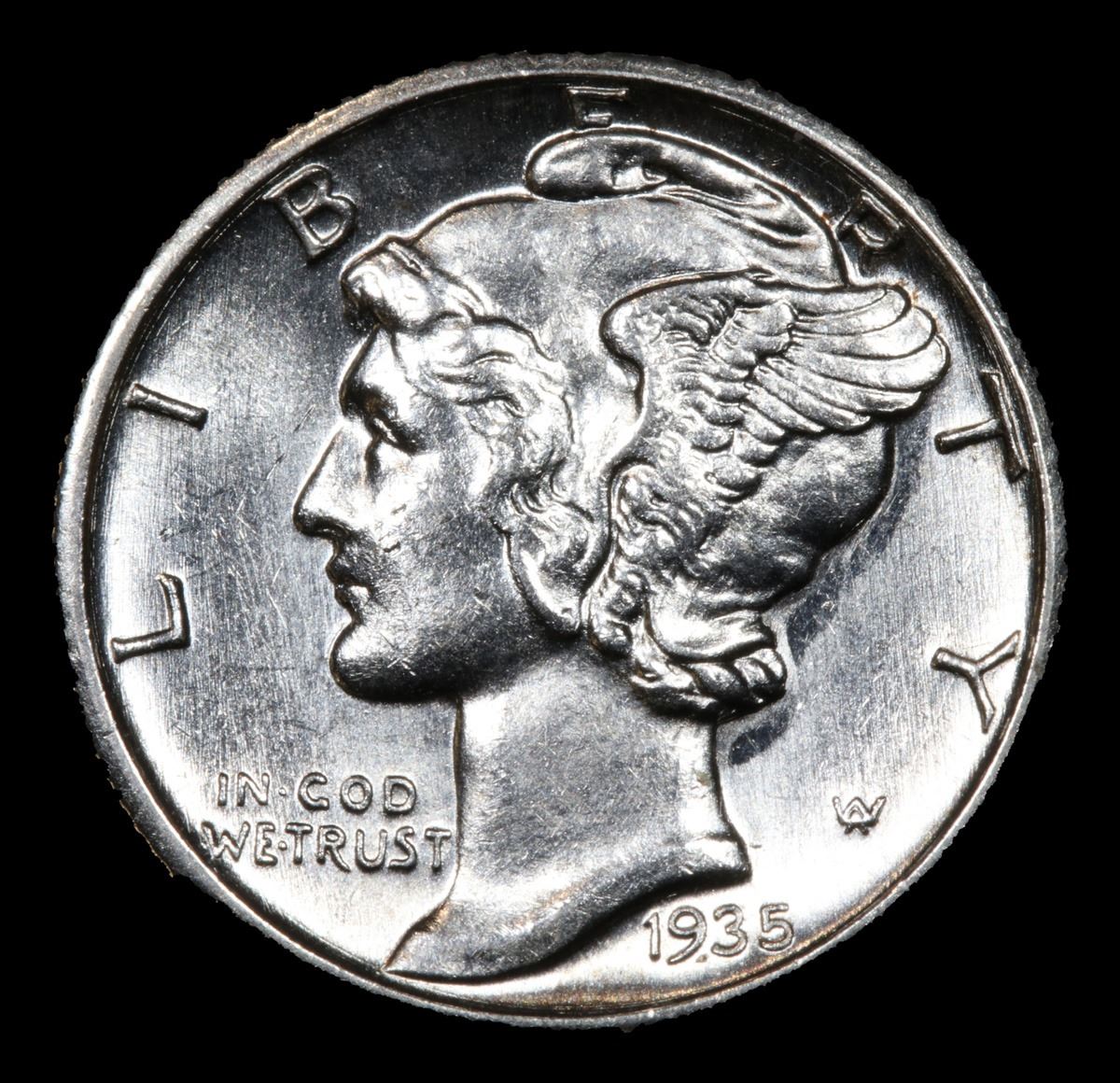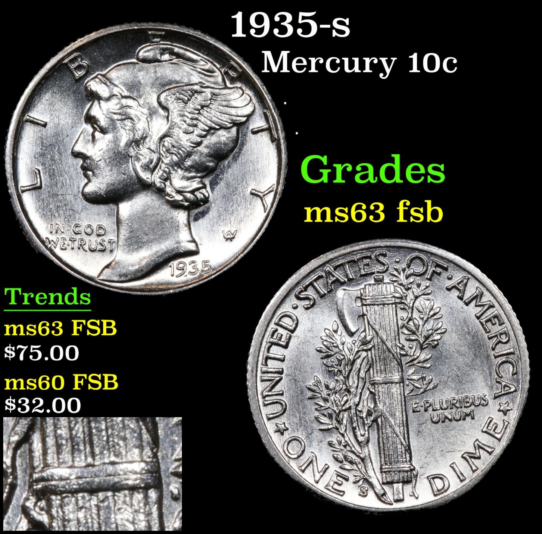 1935-s . . Mercury Dime 10c Grades Select Unc FSB.