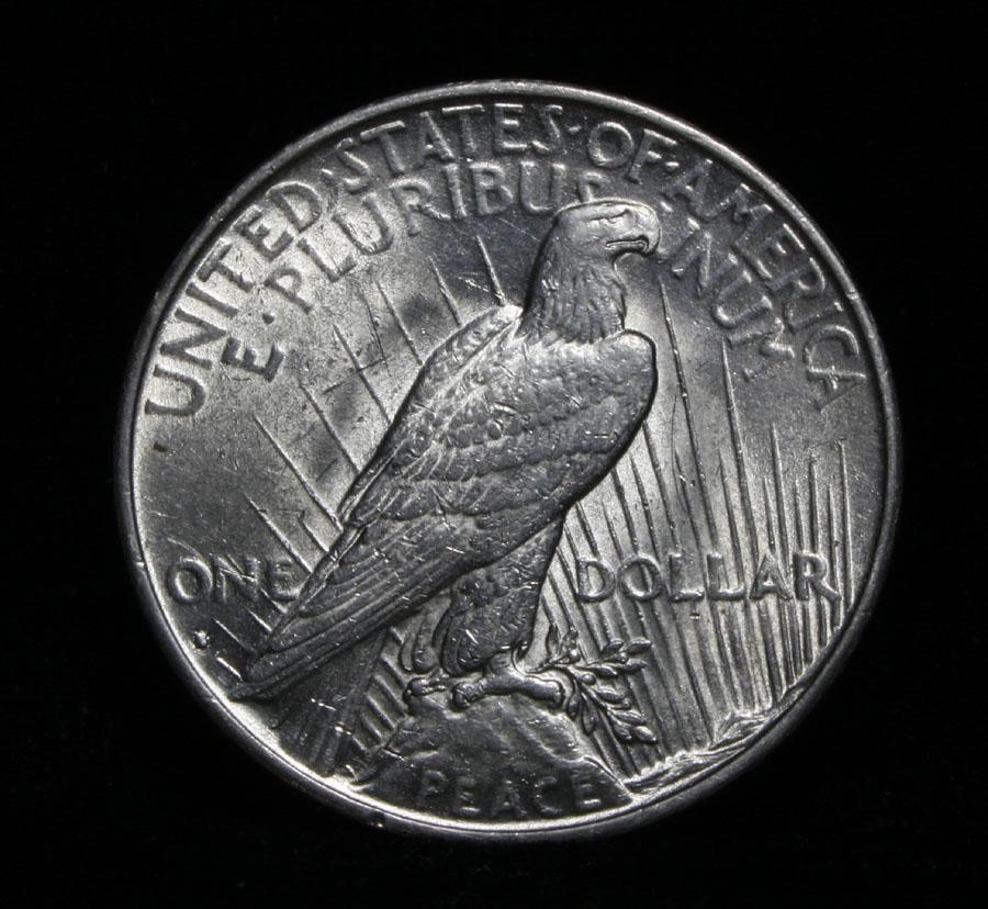 Nice White example of this Branch mint final year of the Peace Dollar series. Good Luster and a decent strike. Coin World's Coin Values lists ms63 at $350 and The Wholesale Greysheet lists ms63 at $290. Estimated Value $300
