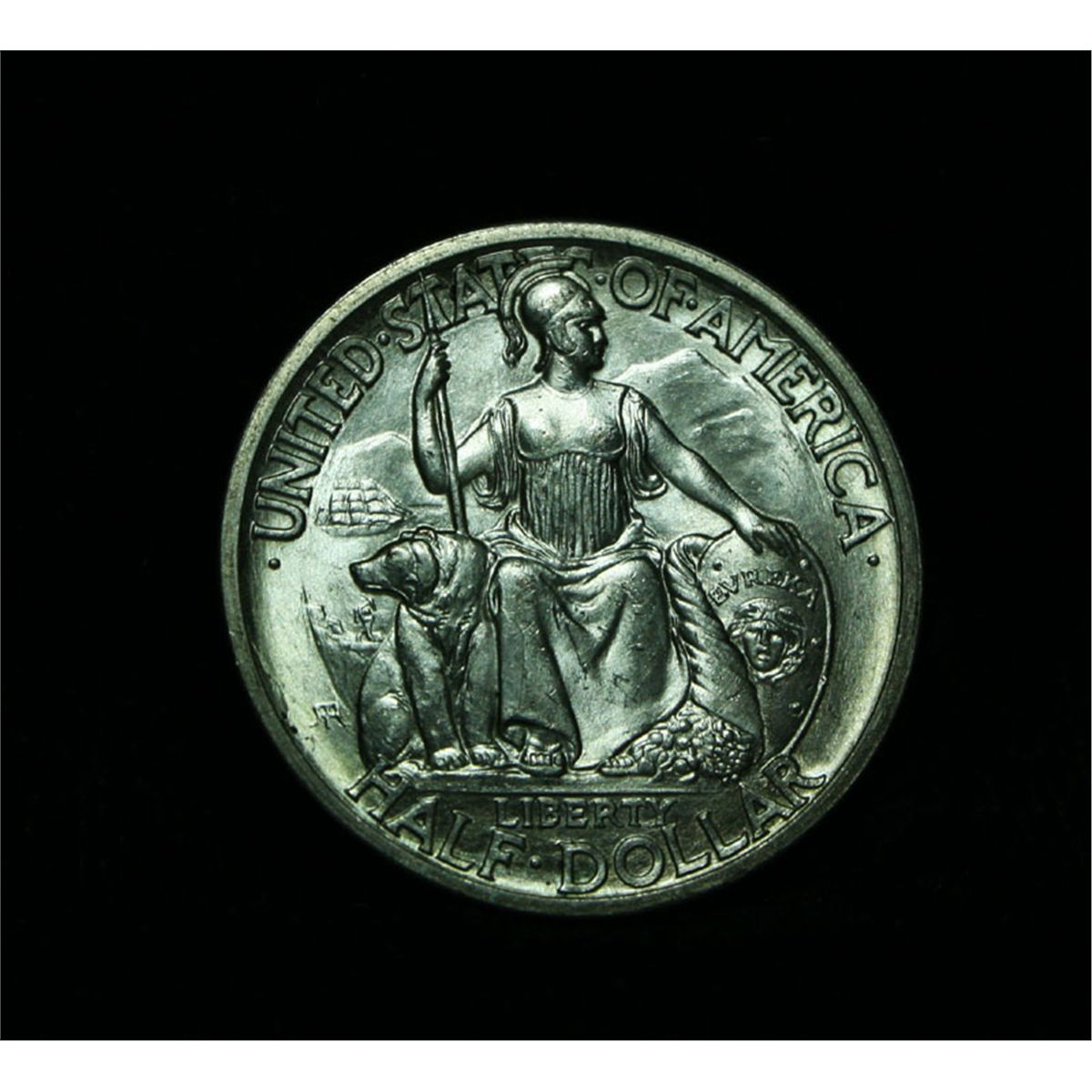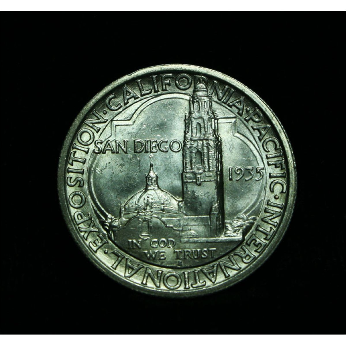 A nice white example of this San Diego Commemorative. When looking at a San Diego half look for the first signs of wear on Minerva’s knees and on the upper-right portion of the tower. Estimated Value $100