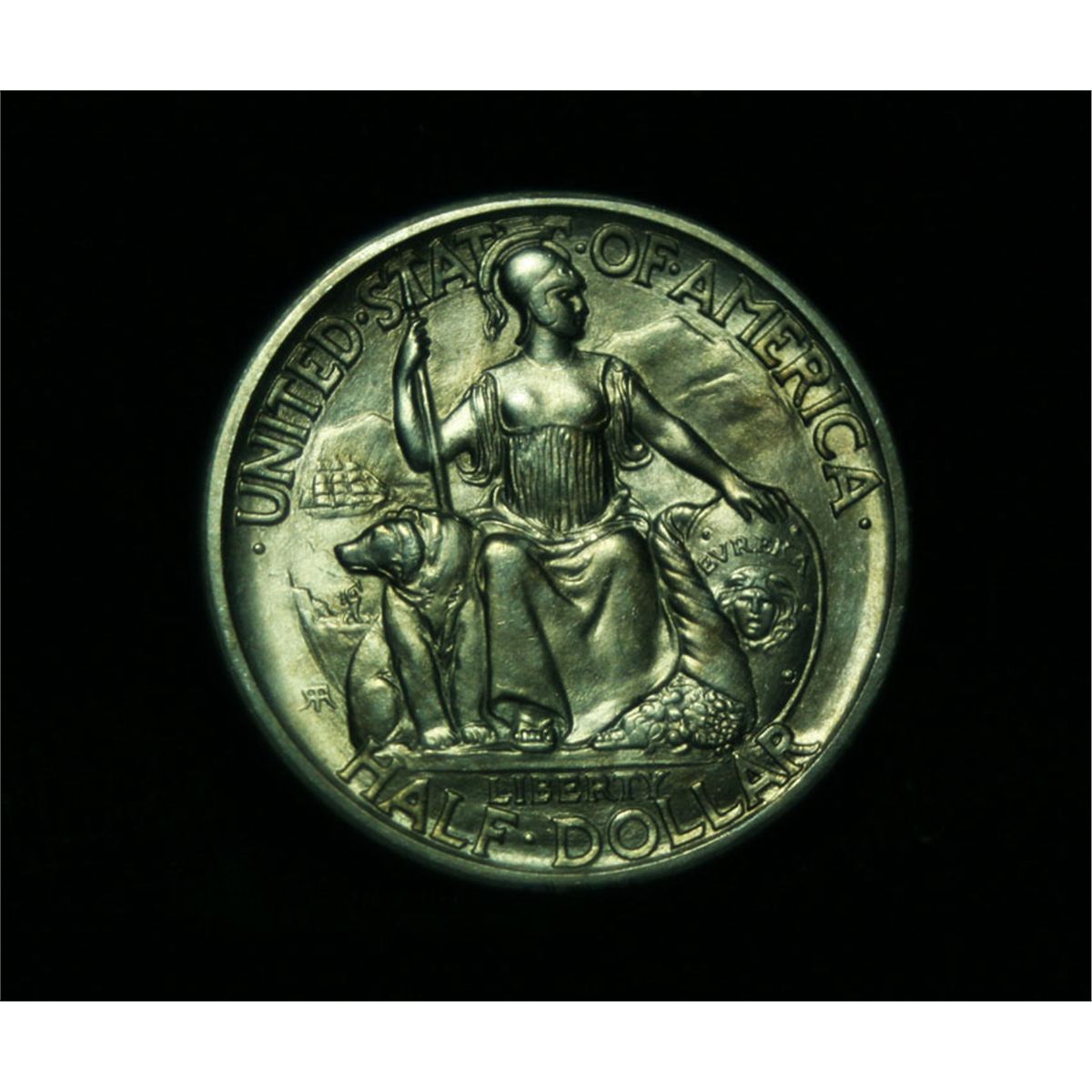 A nice white example of this San Diego Commemorative. When looking at a San Diego half look for the first signs of wear on Minerva’s knees and on the upper-right portion of the tower. NGC's Price Guide Lists ms63 at $124 Estimated Value $100