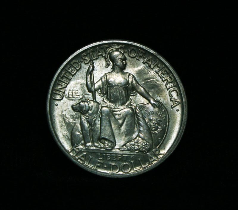 A beautiful and lustrous example of a scarce and sought after coin. Nice light golden toning. When looking at a San Diego half look for the first signs of wear on Minerva’s knees and on the upper-right portion of the tower. Coin World's Coin Values lists ms65 at $160 and The Wholesale Greysheet lists ms65 at $195. Estimated Value $200