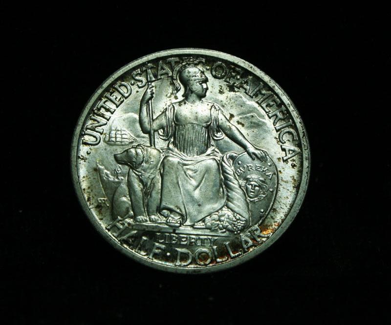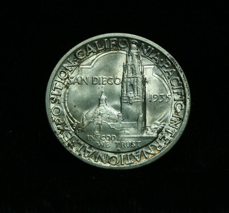 A beautiful and lustrous example of a scarce and sought after coin. All Original with some nice perimeter toning. When looking at a San Diego half look for the first signs of wear on Minerva’s knees and on the upper-right portion of the tower. Coin World's Coin Values lists ms65 at $160 and The Wholesale Greysheet lists ms65 at $110. Estimated Value $135