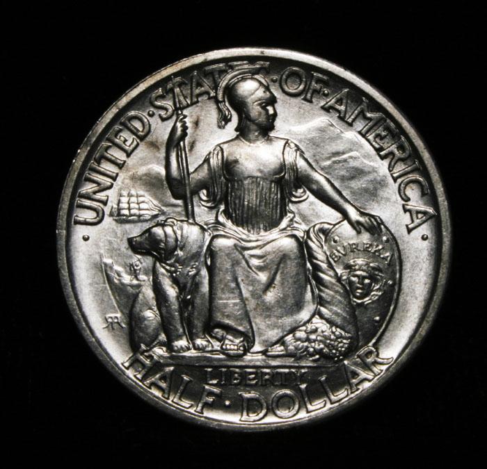 A beautiful and lustrous example of a scarce and sought after coin. When looking at a San Diego half look for the first signs of wear on Minerva’s knees and on the upper-right portion of the tower. Coin World's Coin Values lists ms65 at $160 and The Wholesale Greysheet lists ms65 at $110. Estimated Value $135