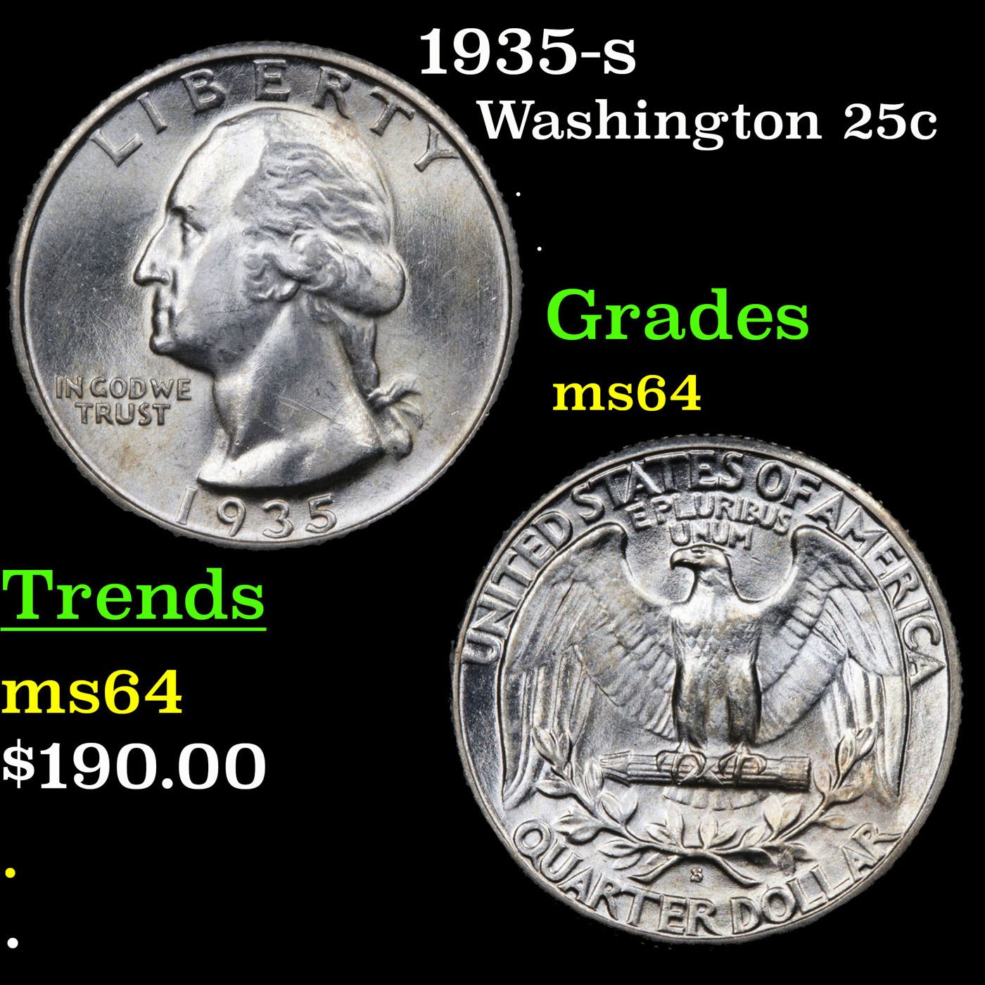 1935-s Washington Quarter 25c Grades Choice Unc.