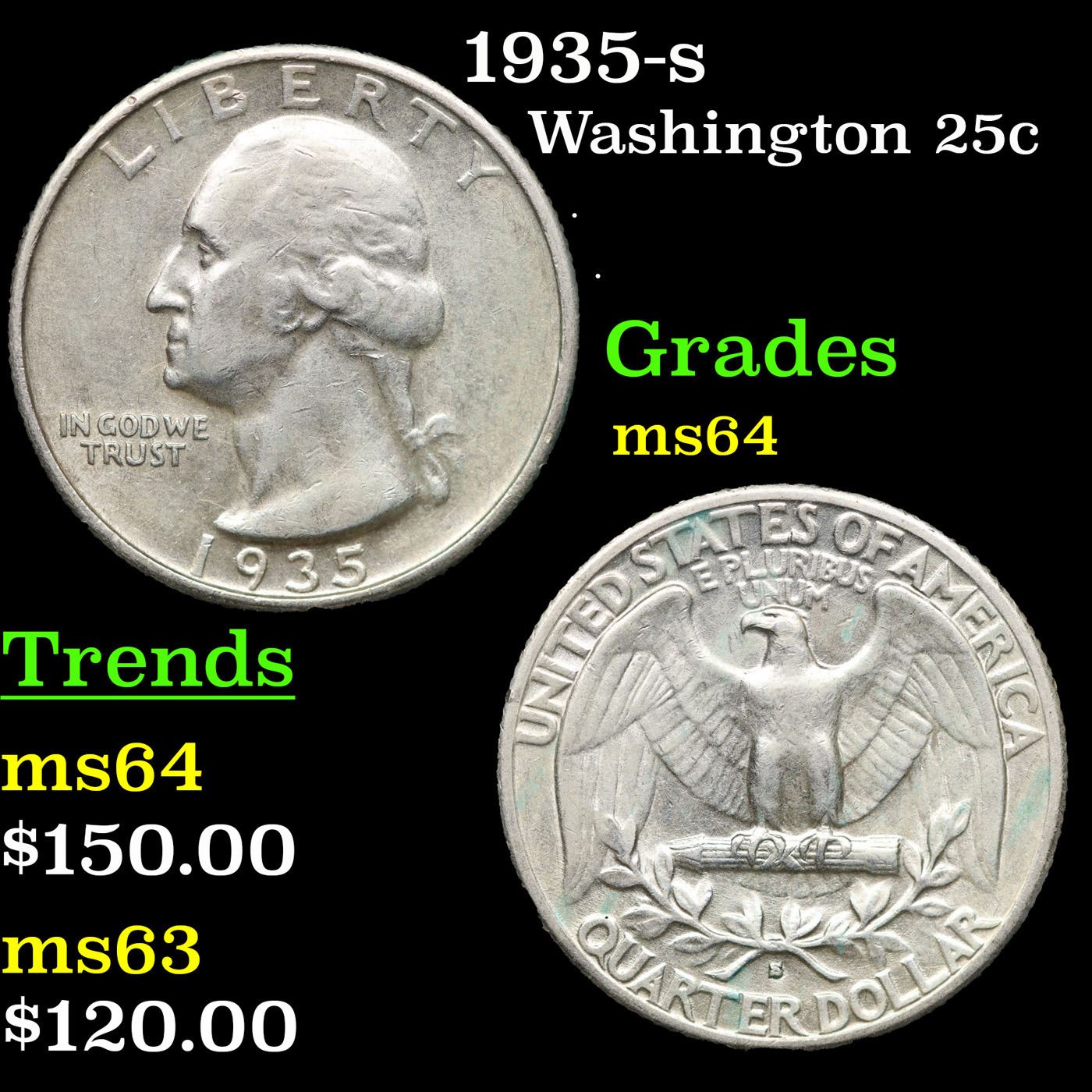 1935-s Washington Quarter 25c Grades Choice Unc.
