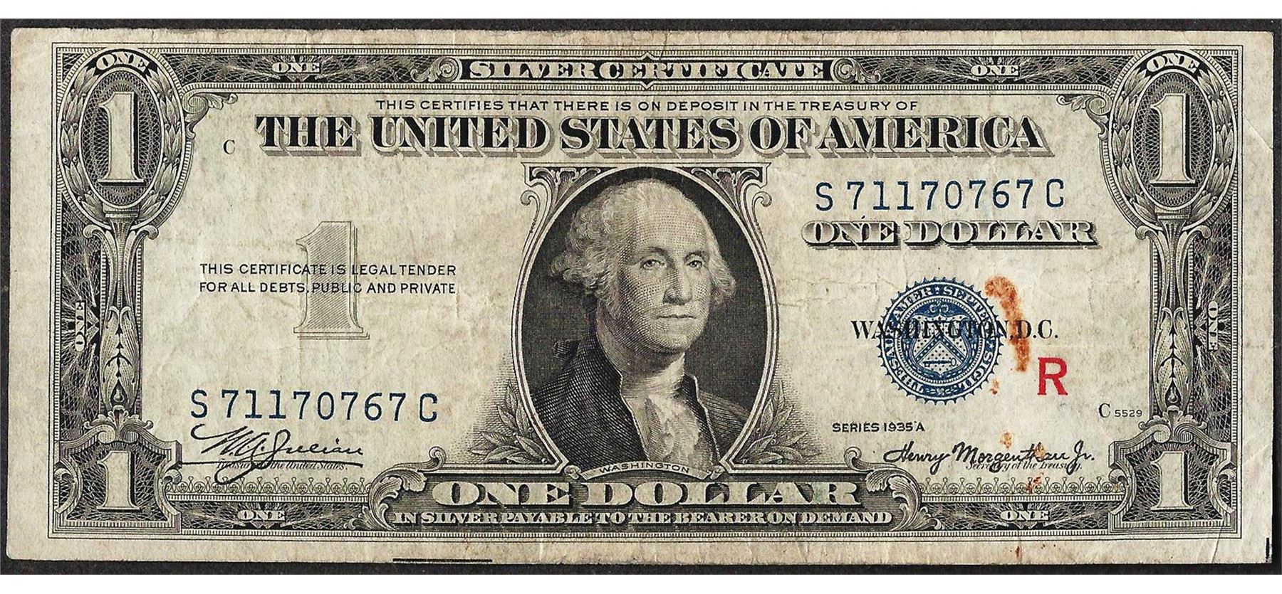 One 1935A $1 Experimental "R" Note Silver Certificate.