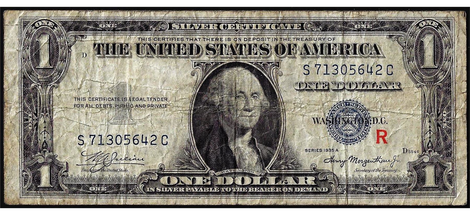 One 1935A $1 Experimental "R" Silver Certificate Note.