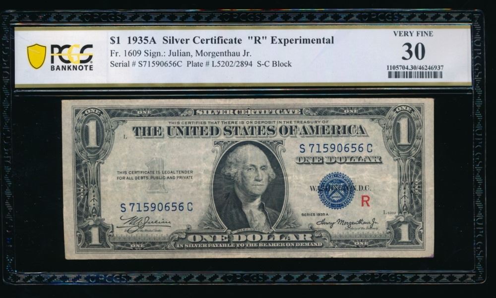 One 1935A $1 Experimental R Silver Certificate PCGS 30.