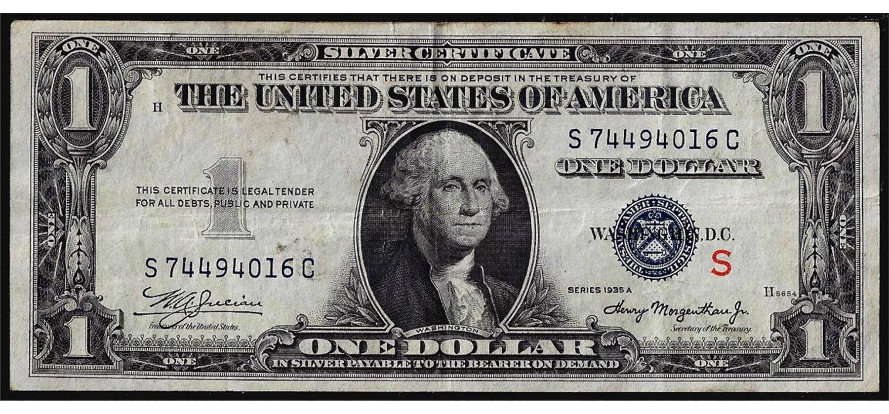 One 1935A $1 Experimental "S" Silver Certificate Note.