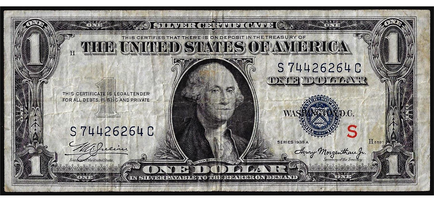 One 1935A $1 Experimental "S" Silver Certificate Note.
