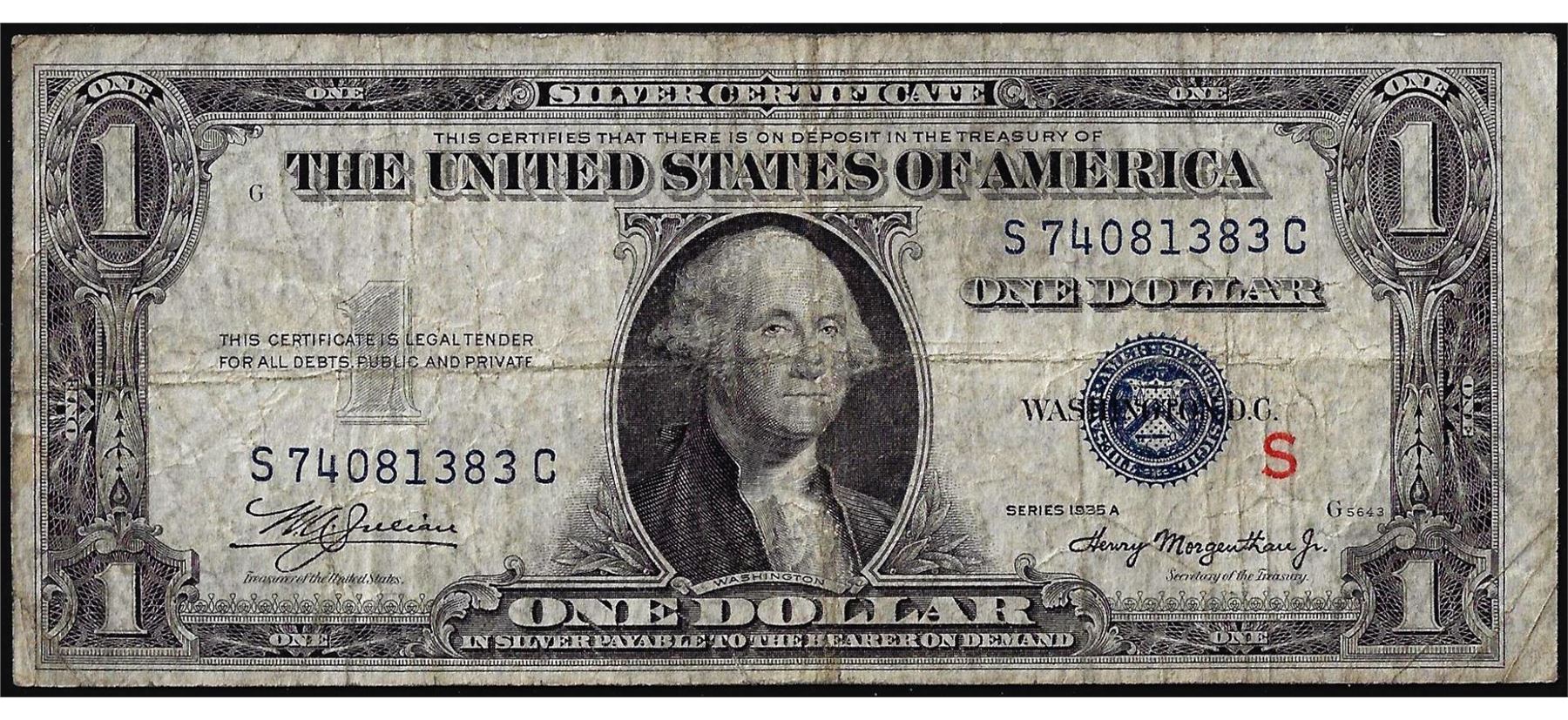 One 1935A $1 Experimental "S" Silver Certificate Note.