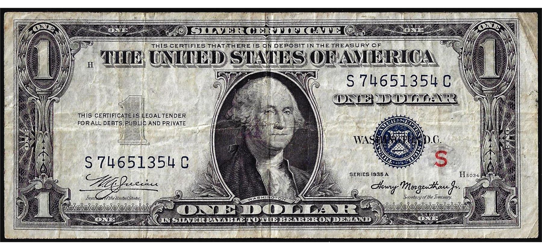 One 1935A $1 Experimental "S" Silver Certificate Note.