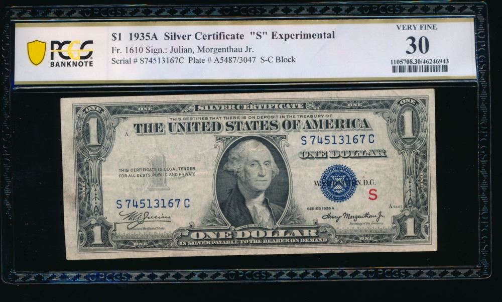 One 1935A $1 Experimental S Silver Certificate PCGS 30.