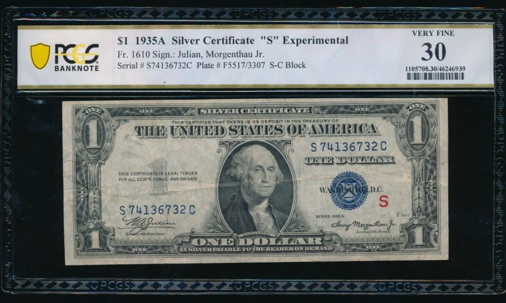 One 1935A $1 Experimental S Silver Certificate PCGS 30.