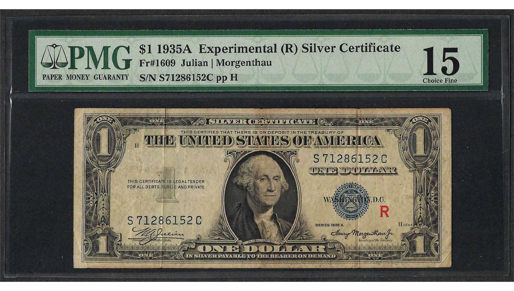 One 1935A $1 Experimental Silver Certificate Note Fr.1609 PMG Choice Fine 15. PMG Certified.