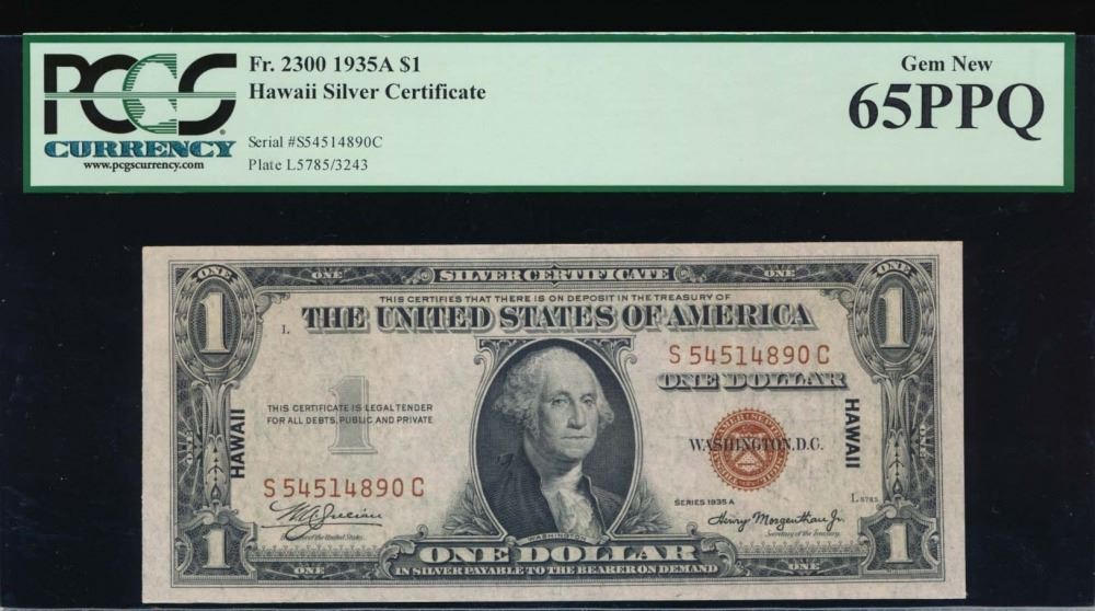 One 1935A $1 Hawaii Silver Certificate PCGS 65PPQ.