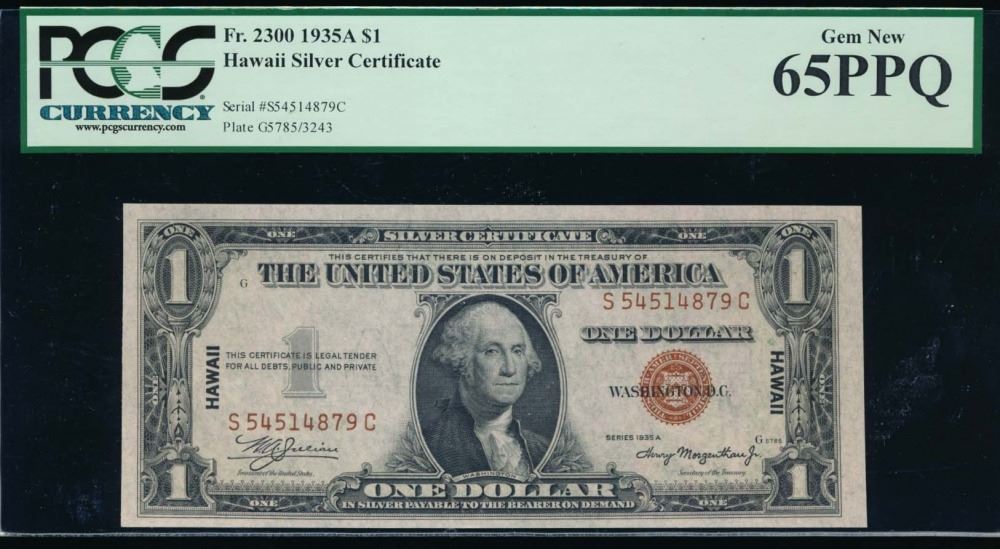 One 1935A $1 Hawaii Silver Certificate PCGS 65PPQ.