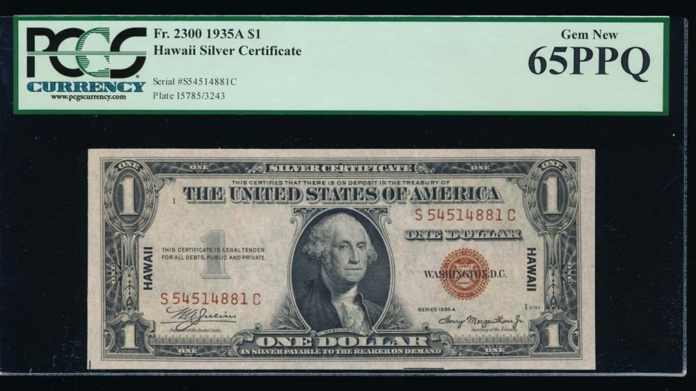 One 1935A $1 Hawaii Silver Certificate PCGS 65PPQ.